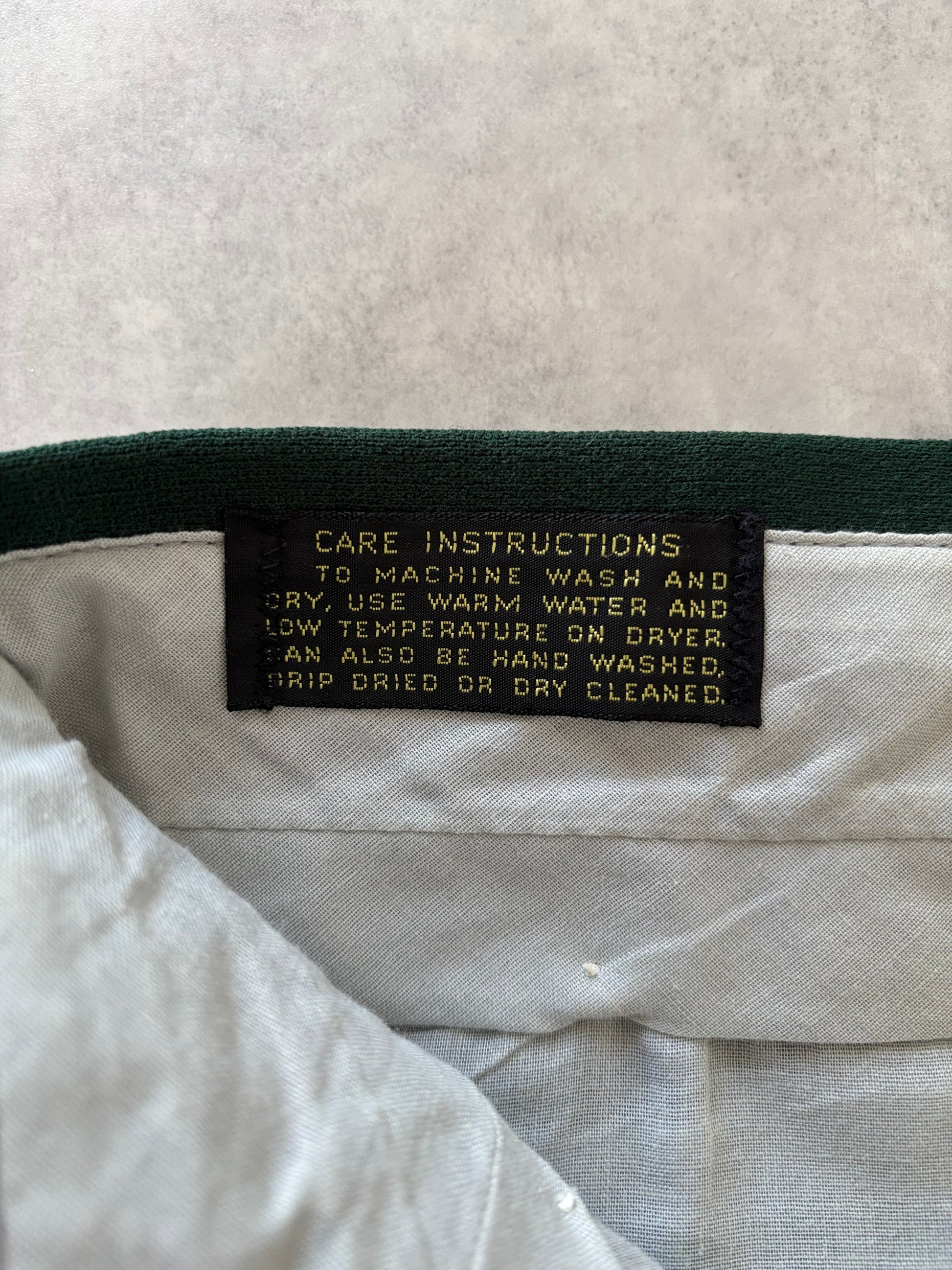 90年代らしい深めのグリーンが印象的なパンツ。